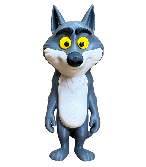 Des figurines de toutes tailles : Du petit loup de bureau en résine ultra-détaillée aux versions géantes en PLA multicolore.